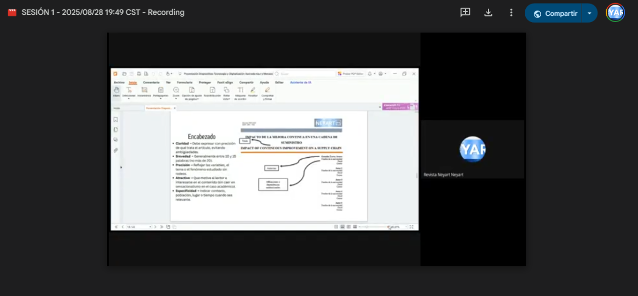 Así mismo durante la sesión se abordaron las principales etapas de construcción de un artículo: selección del tema, revisión bibliográfica y estructura IMRyD.